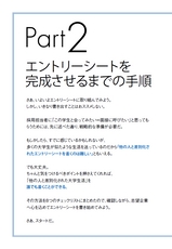 Part 2 エントリーシートを完成させるまでの手順39完成させるまでの手順就活中こそ「遊び」「熱中していること」に力を入れる就活に専念したいという理由で「大好きなサークルに顔を出さなくなり」「趣味をやめ」「熱中しているアルバイトを減らす」ことを選択する人がいる。僕はおススメしない。「自分が心から楽しいと思えること」の先に、仕事があるからだ。それを制限しているようでは、大切なことが何かわからなくなってしまう。「心から楽しい」ことを、今日も日々、実感しているからこそ、納得した気持ちでエントリーシートが書ける。そのワクワク感(=やる気)が、読み手に伝わるのだ。